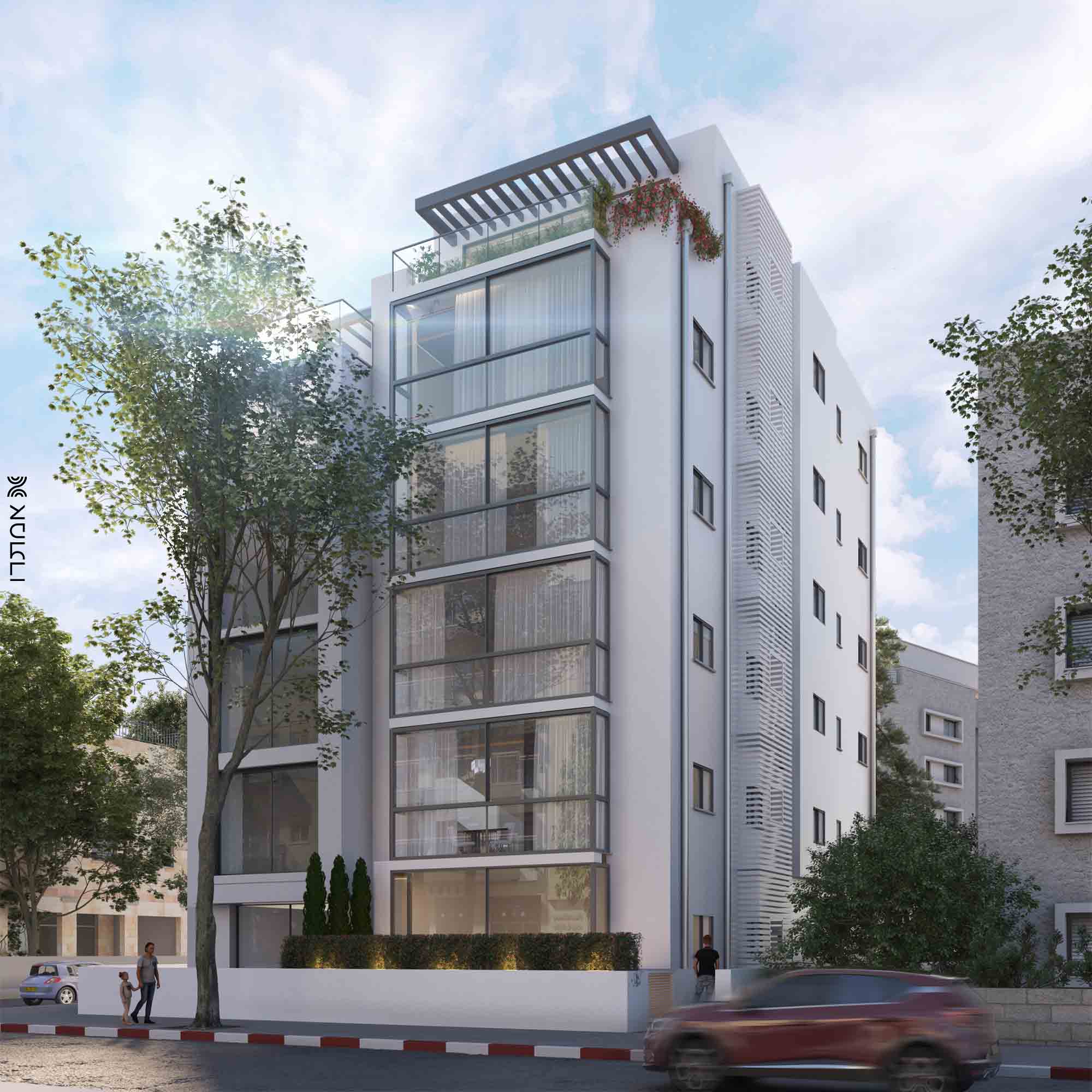 הדמיה להתחדשות עירונית בתל אביב, בעבודה מדוייקת המחשנו את שילוב הבניין בסגנון הבניה התל-אביבי.