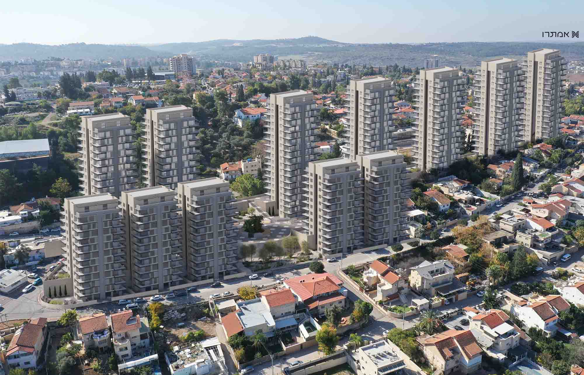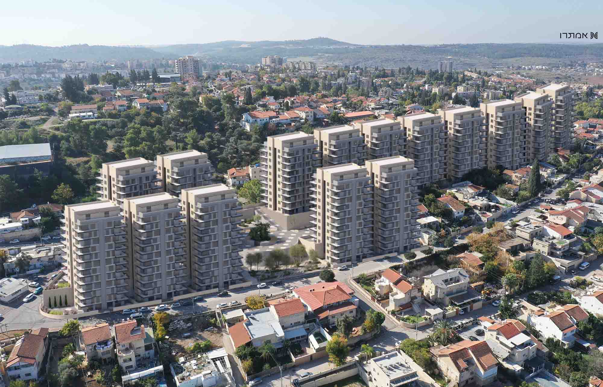 הדמיית שתילה באמצעות תמונת רחפן עבור פרויקט פינוי-בינוי הכולל מאות יחידות דיור בבית שמש.